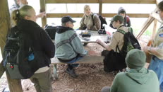 After lunch, many more smaller groups of scouts cycled through, to decode a sheet of morse code, encode their
