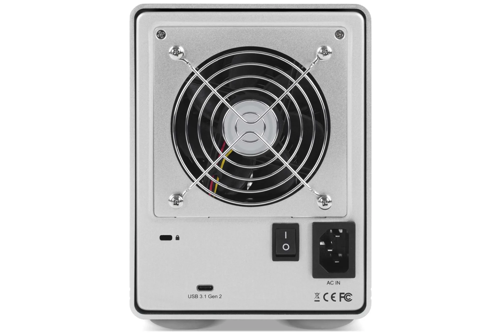 This enclosure has just a USB-C / thunderbolt-3 port on the back. Plugging it in just mounts four separate