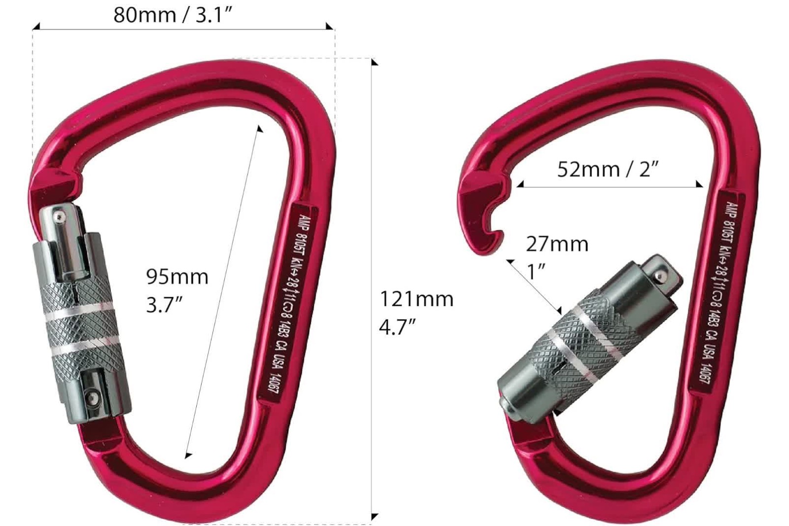 Red carabiners are hard to find. Triple-locking red carabiners are even harder to find.