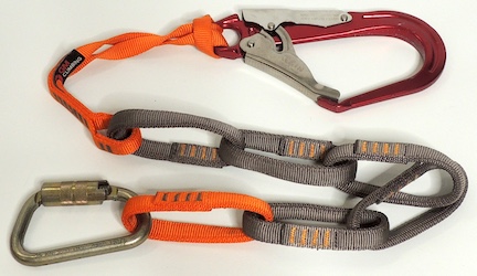 This is a simple adjustable tether made from a tri-lock carabiner, a chain sling, and an akuminum ladder hook.