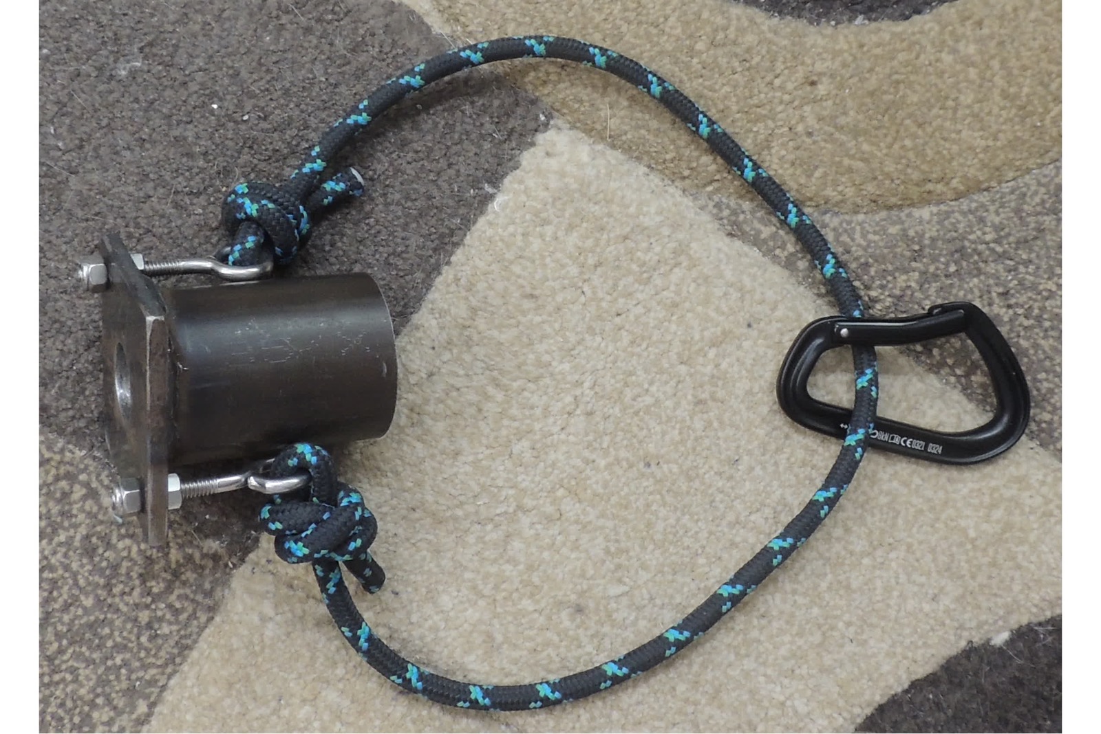 What I came up with is my "gin pole cup". It's a pretty simple design - just a square of steel with a hole in