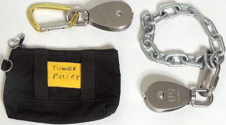 This bag holds the big lift pulley (for the top of the tower) and the big chained pulley (for the base of the