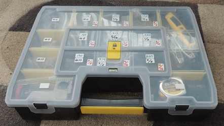 My tower hardware box contains a supply of extra stainless steel hardware, as well as a few extra tools. The