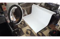 For the living room I just get out and unroll one of my screens. and aim the ring light at it. The background