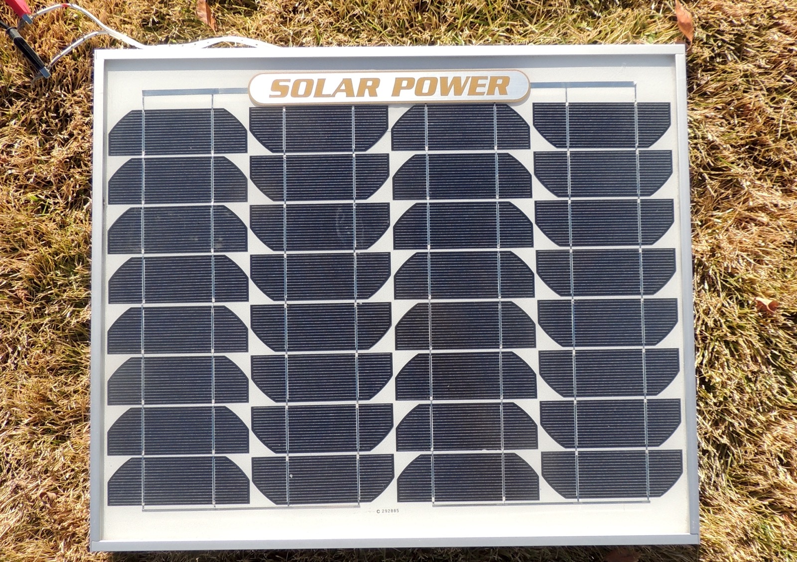 pretty small panel, but is weatherproof with a solid frame, and I'd guess it's rated about 30w.
