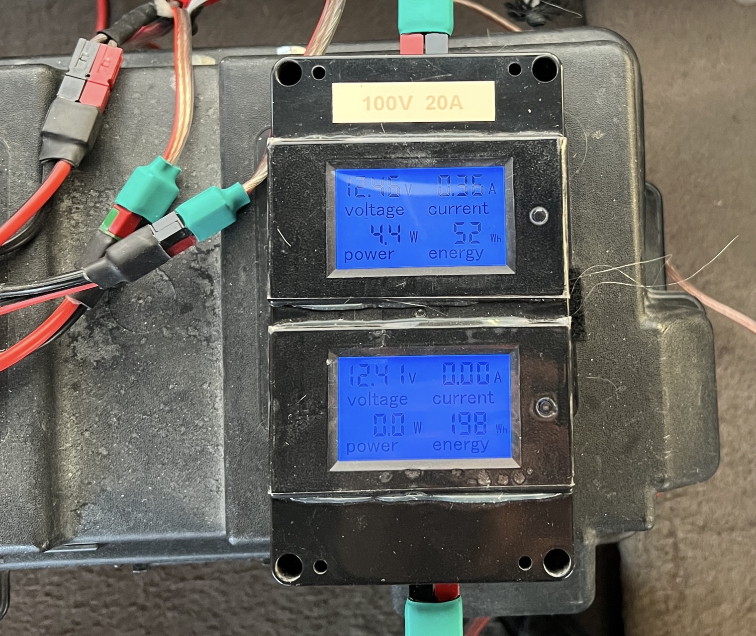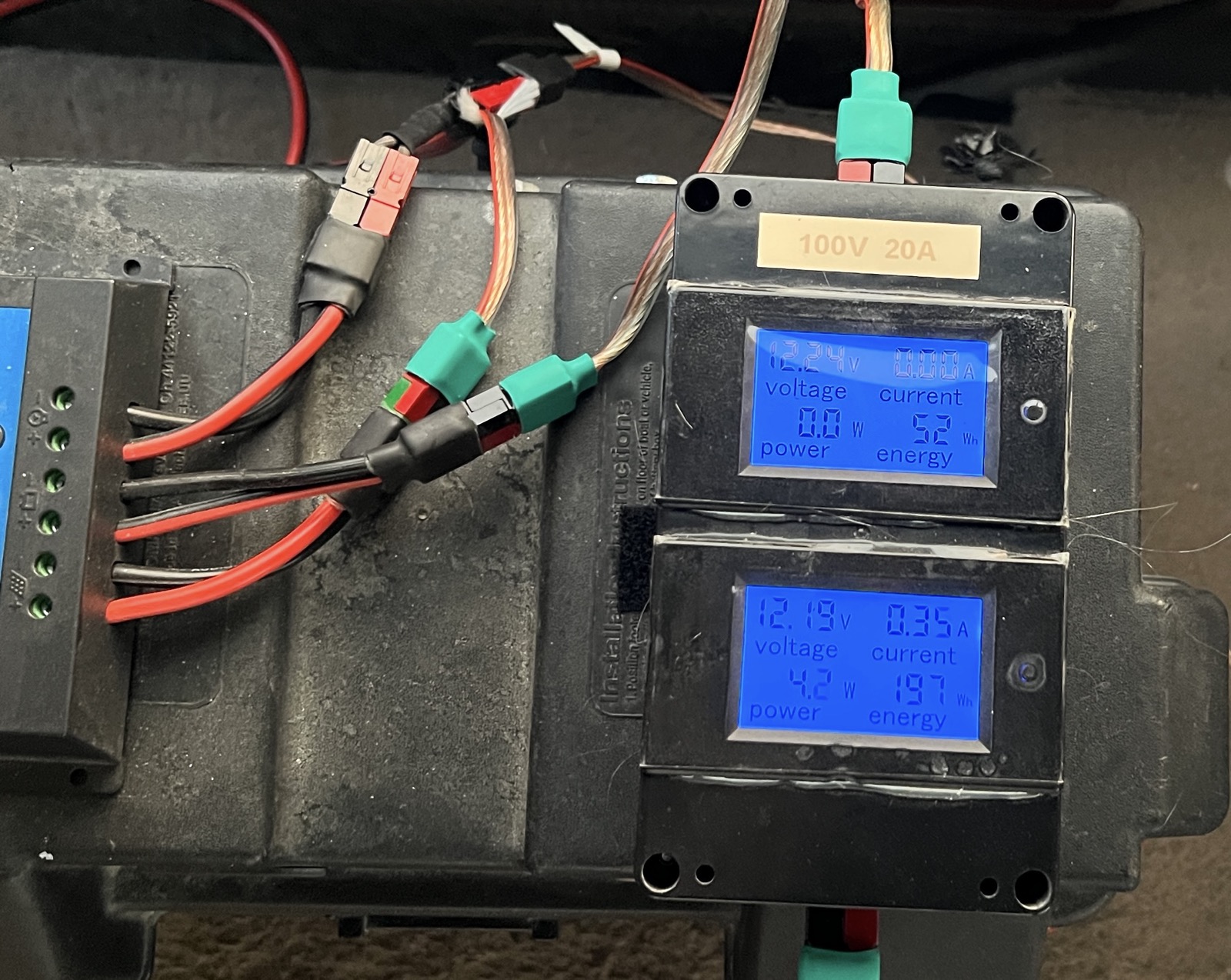 I placed my bidirectional wattmeter box inline with the dashcam battery to monitor incoming and outgoing power