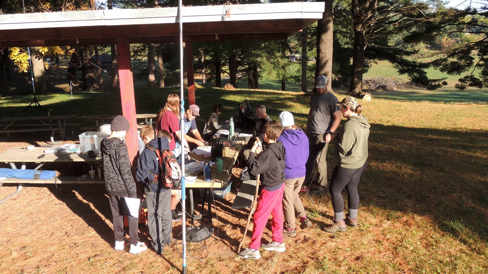 Dave (KD0DK) was operating from the East end of the Picnic Shelter, talking to the scouts about morse code and