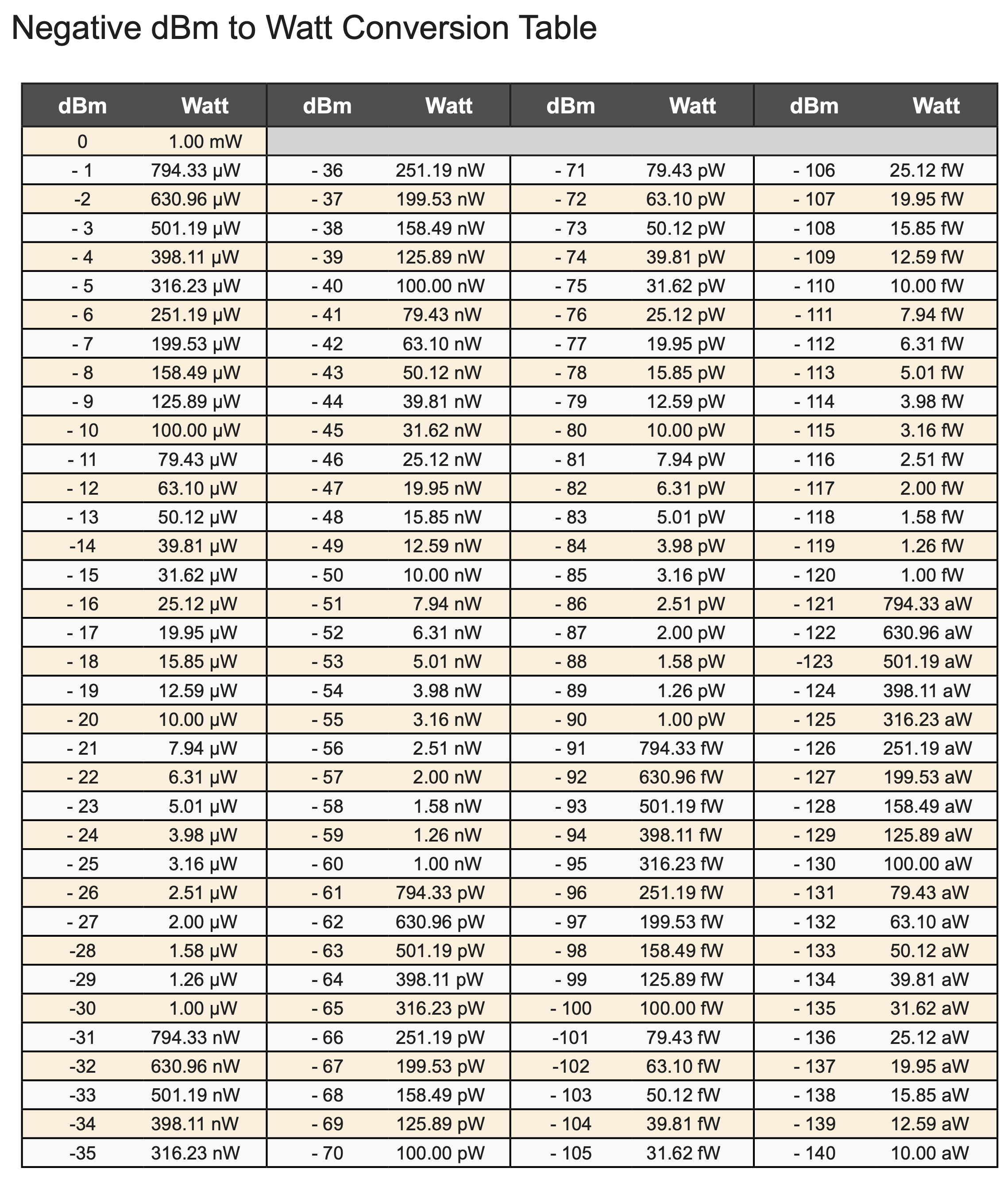 Negative dBm to Watt Conversion Table.png