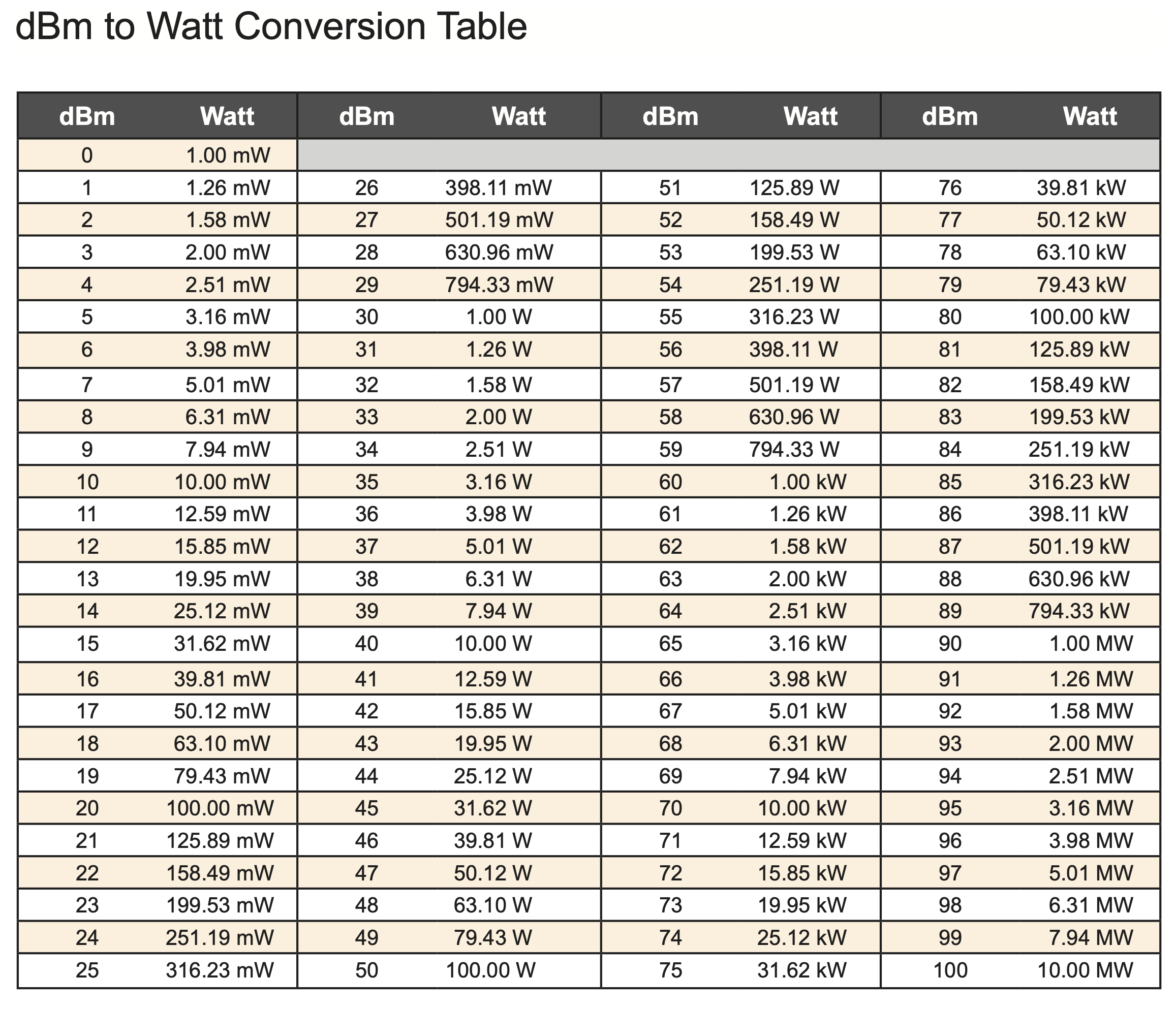 dBm to Watt Conversion Table.png