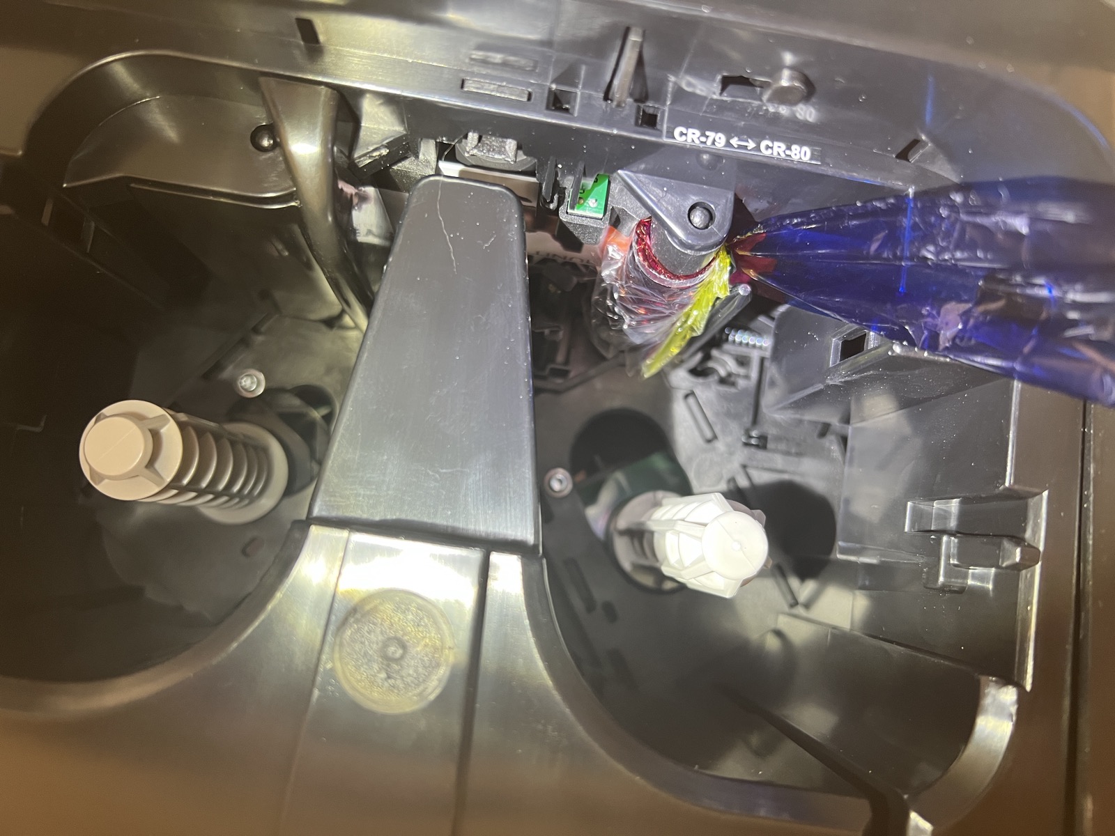 up ribbon off the feed roller. They had one spare ribbon on-hand, and I was able to get that installed
