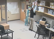 Brian just had to add that one last box, and down it came. The shelves had only been anchored into the