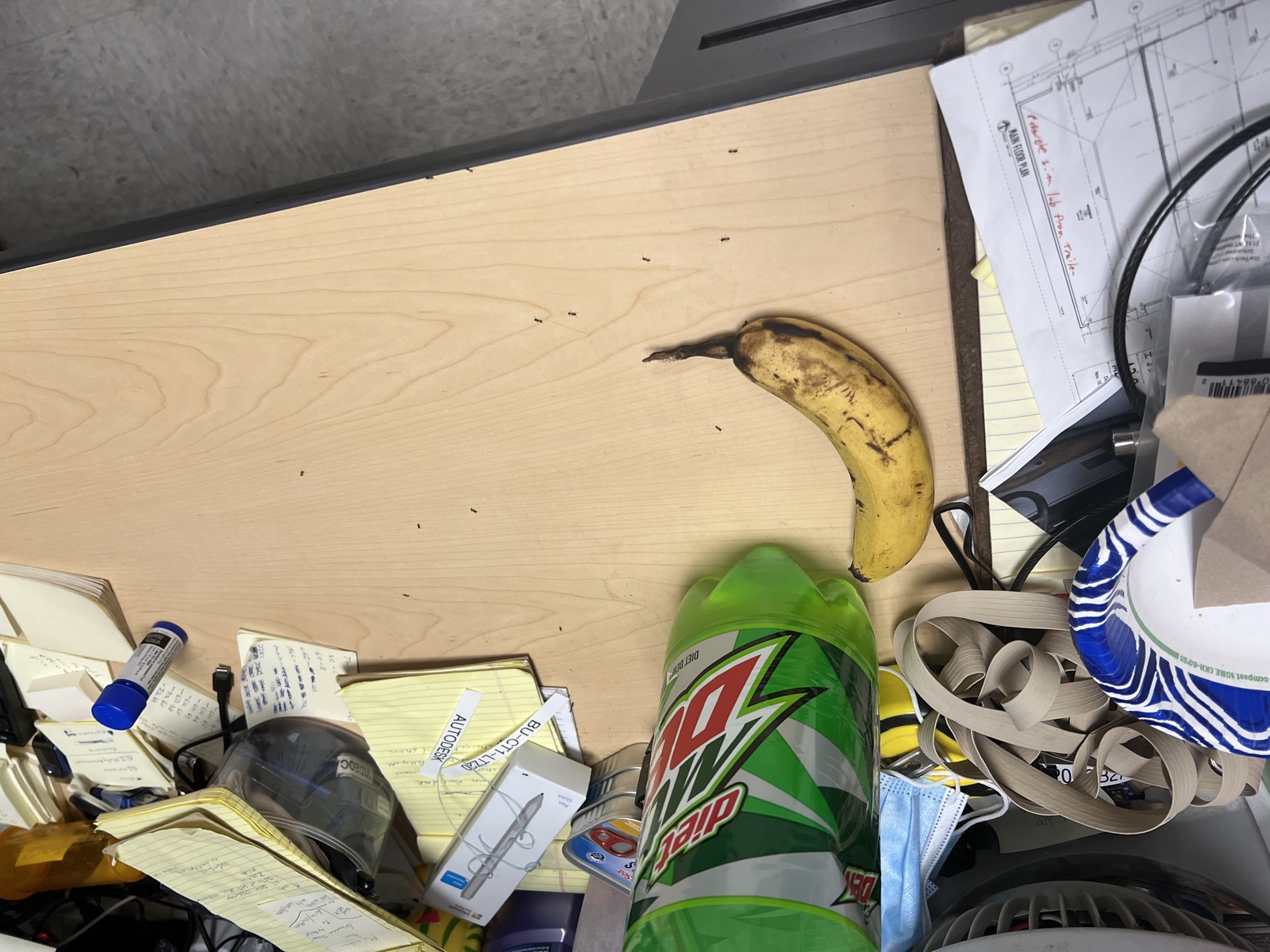 Royce left a ripe banana on his desk, which attracted a number of ants by 4:30 pm