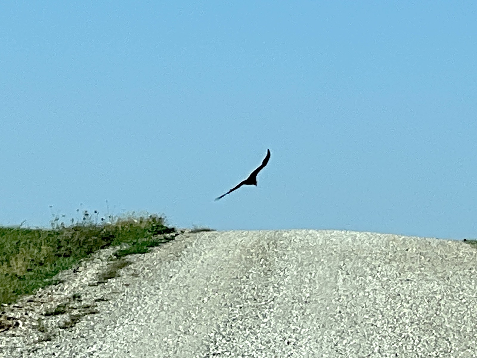 I got a few pics of the juvenile on the ground and in the air. The neighbor's ham antenna came into view just