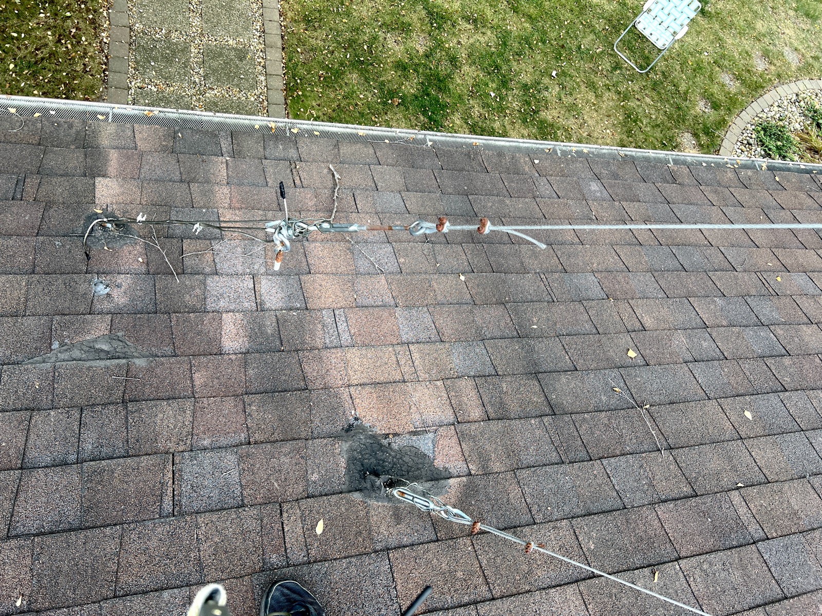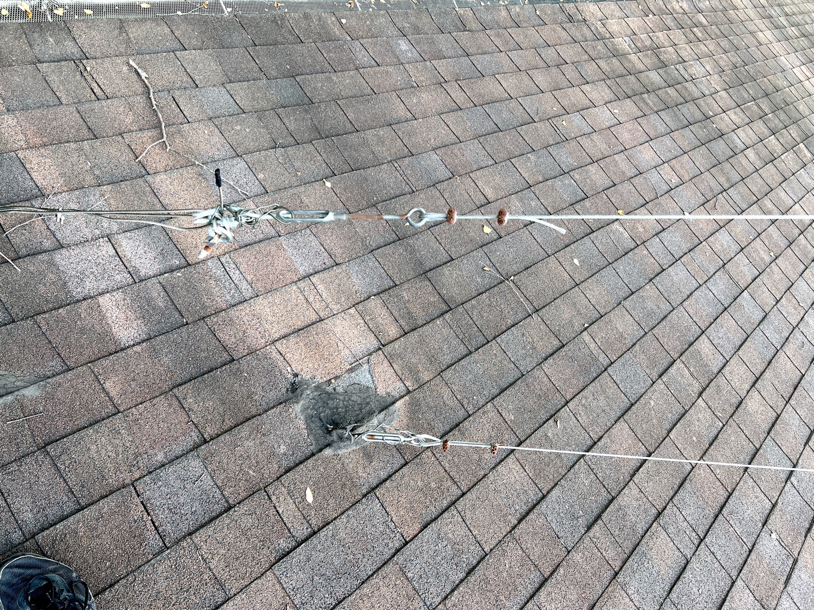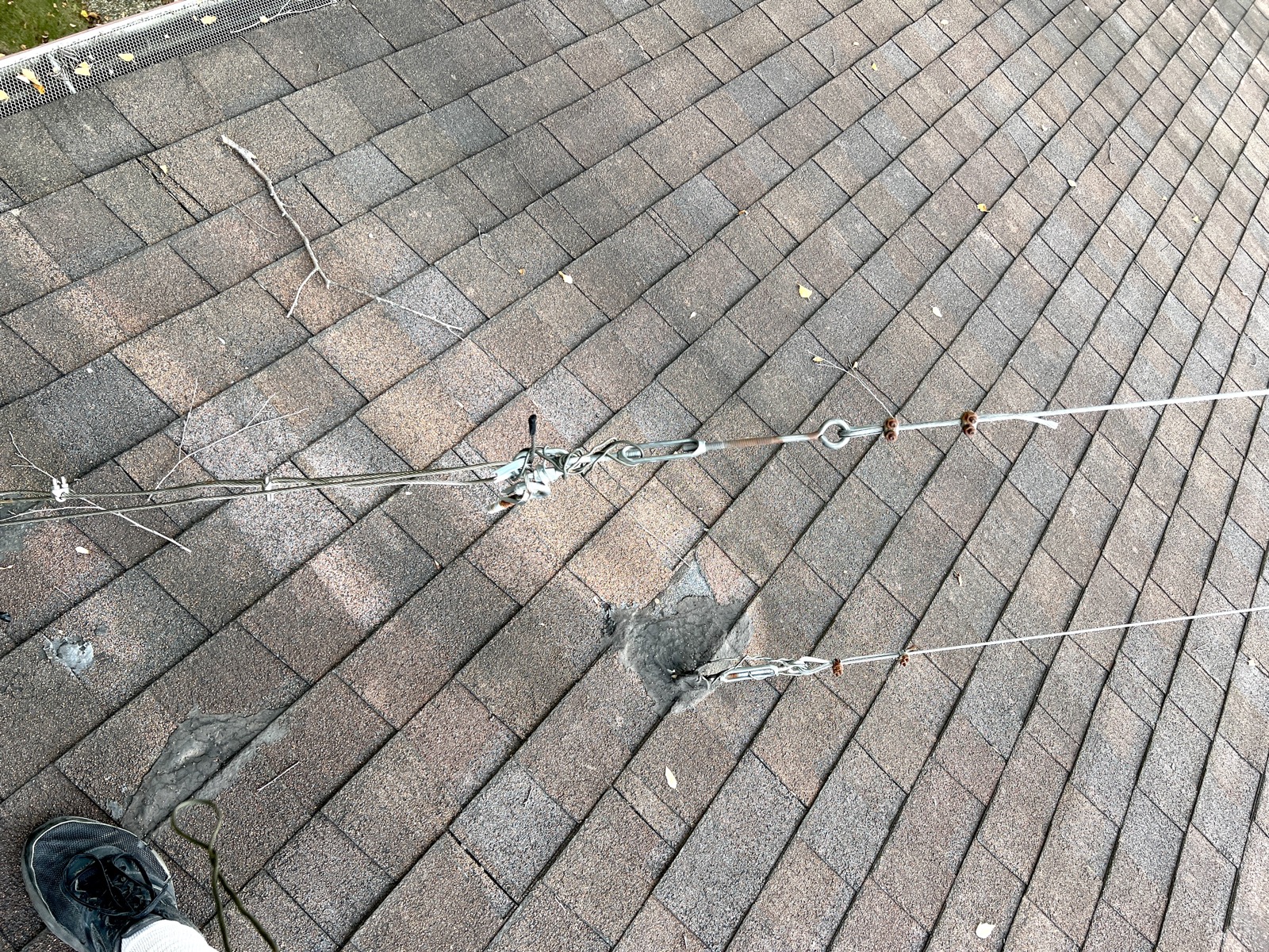but the turnbuckle was already maxed, so the guy wire needed to be pulled in a little. All the roof anchors