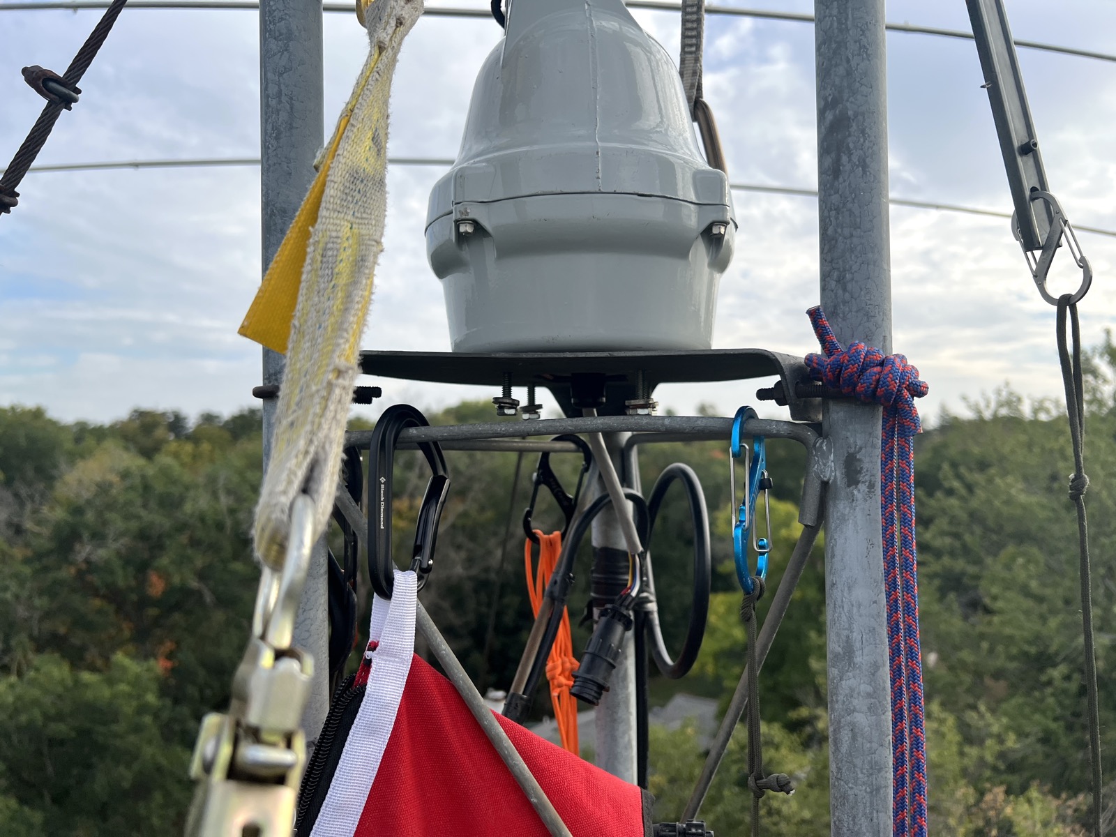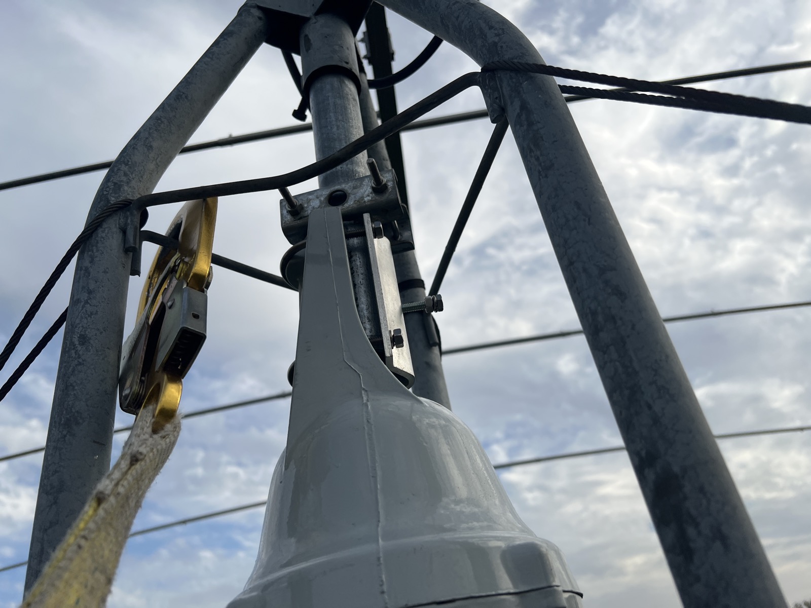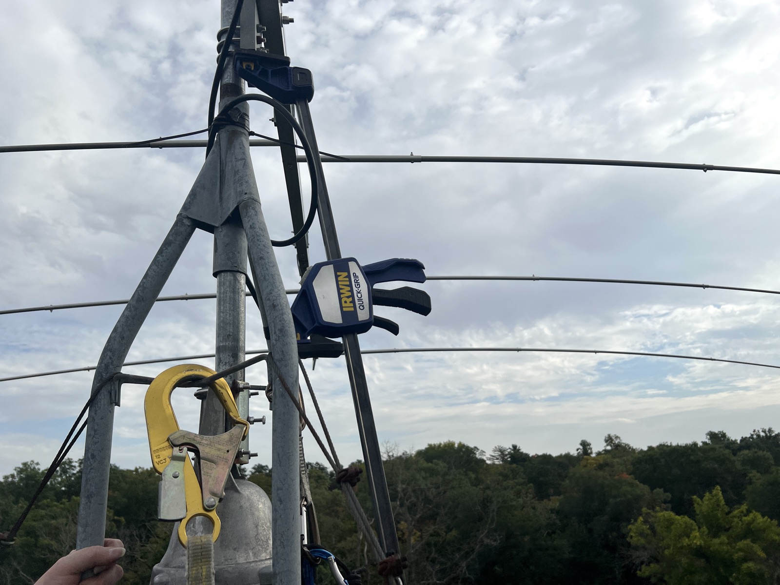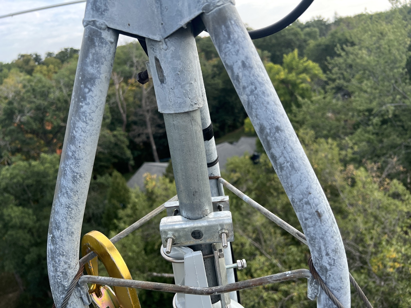 a pole clamp on the mast just above the neck as a safety and then swapped the rotor. I intended to remove the