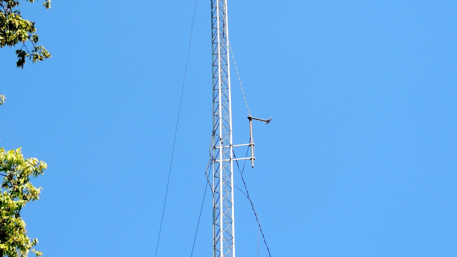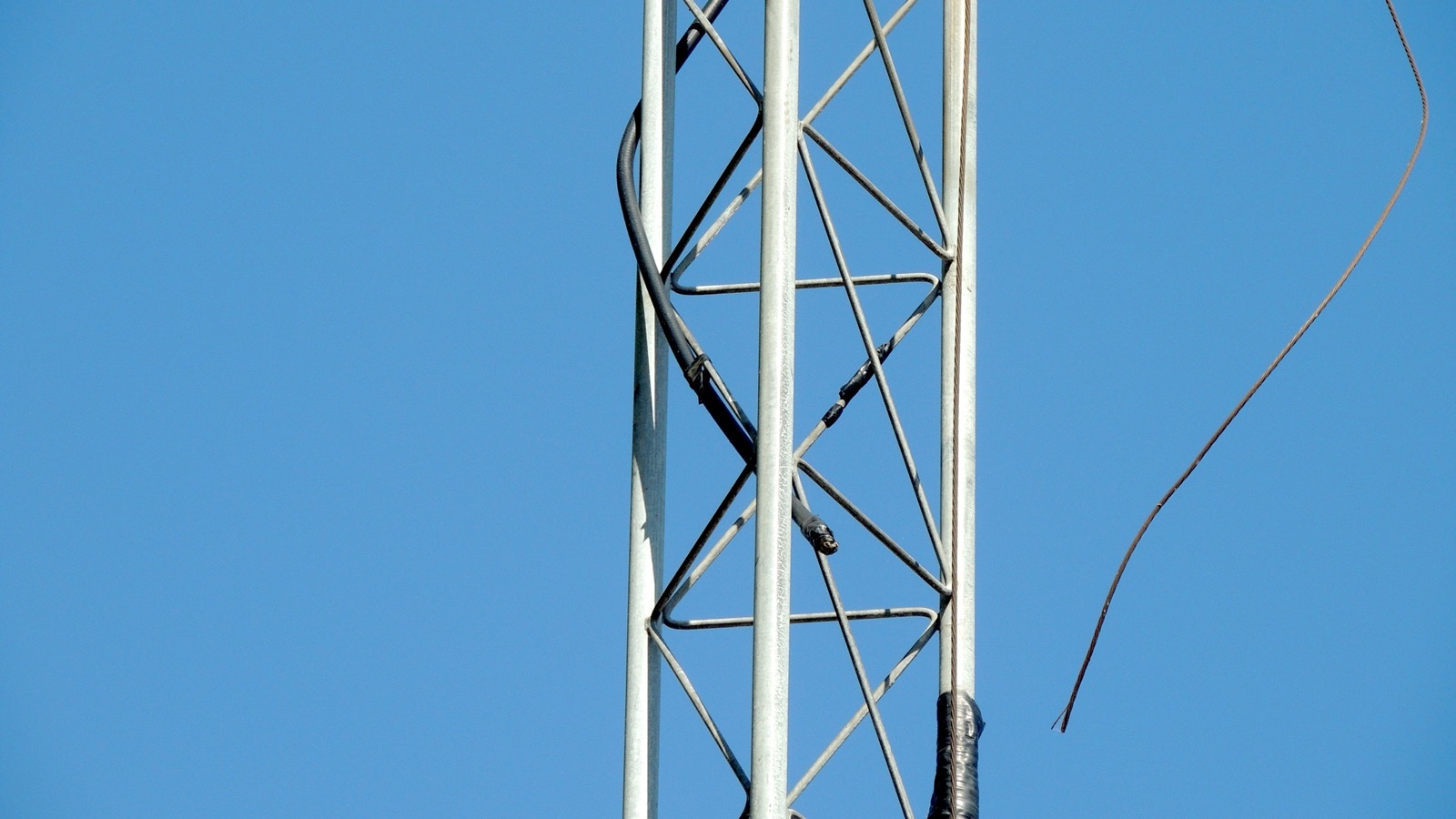 broken. The tower has one more set of guys near the top, one of which goes to the post and one to a corner