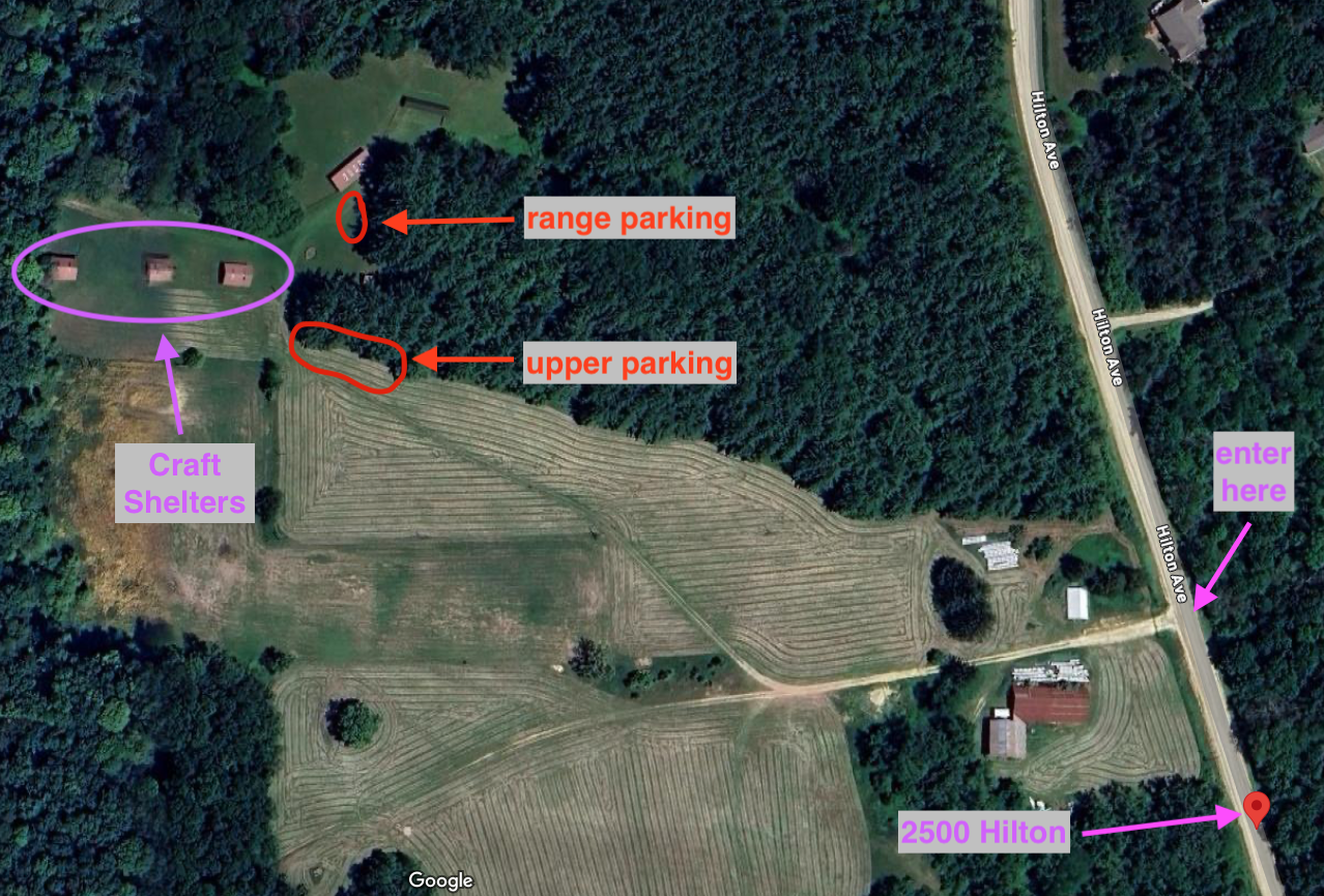 0 Ingawanis South map     1 South roadside     2 South thru gate     3 South right turn     4 South Craft Shelters     5 South Range Shelter