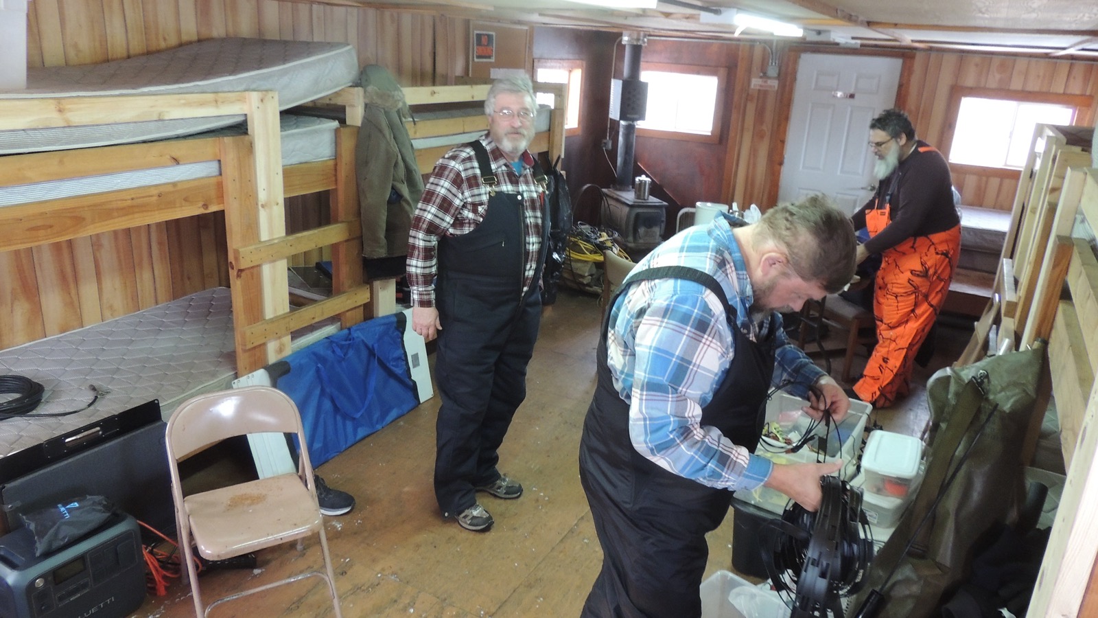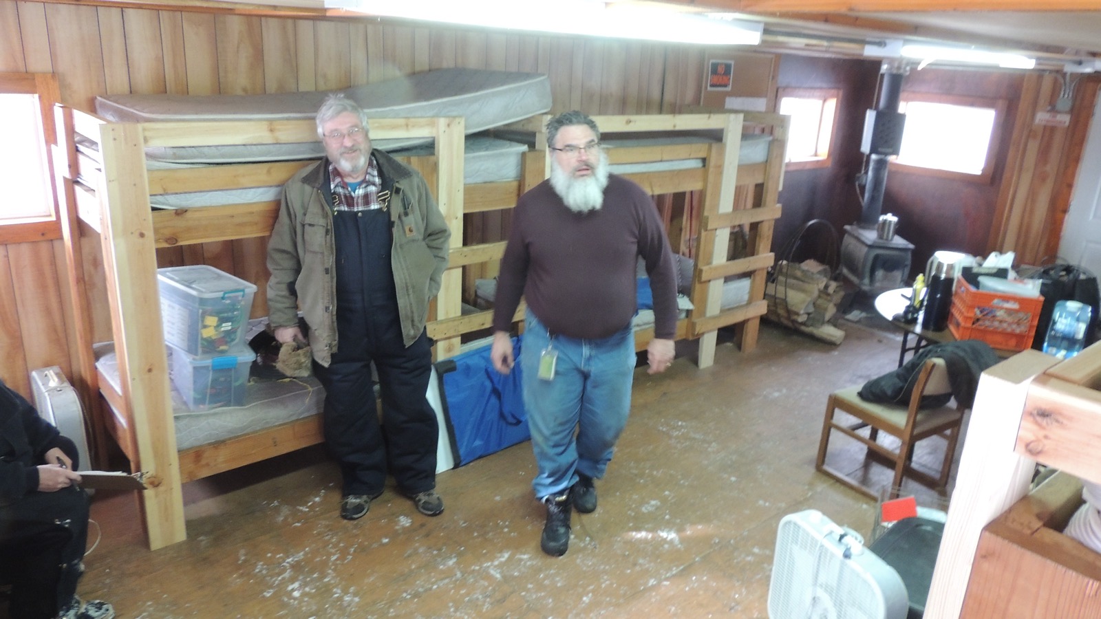 Mattresses were taken off the two bunks by the front (East) door to use the wood bunks for two radio stations.