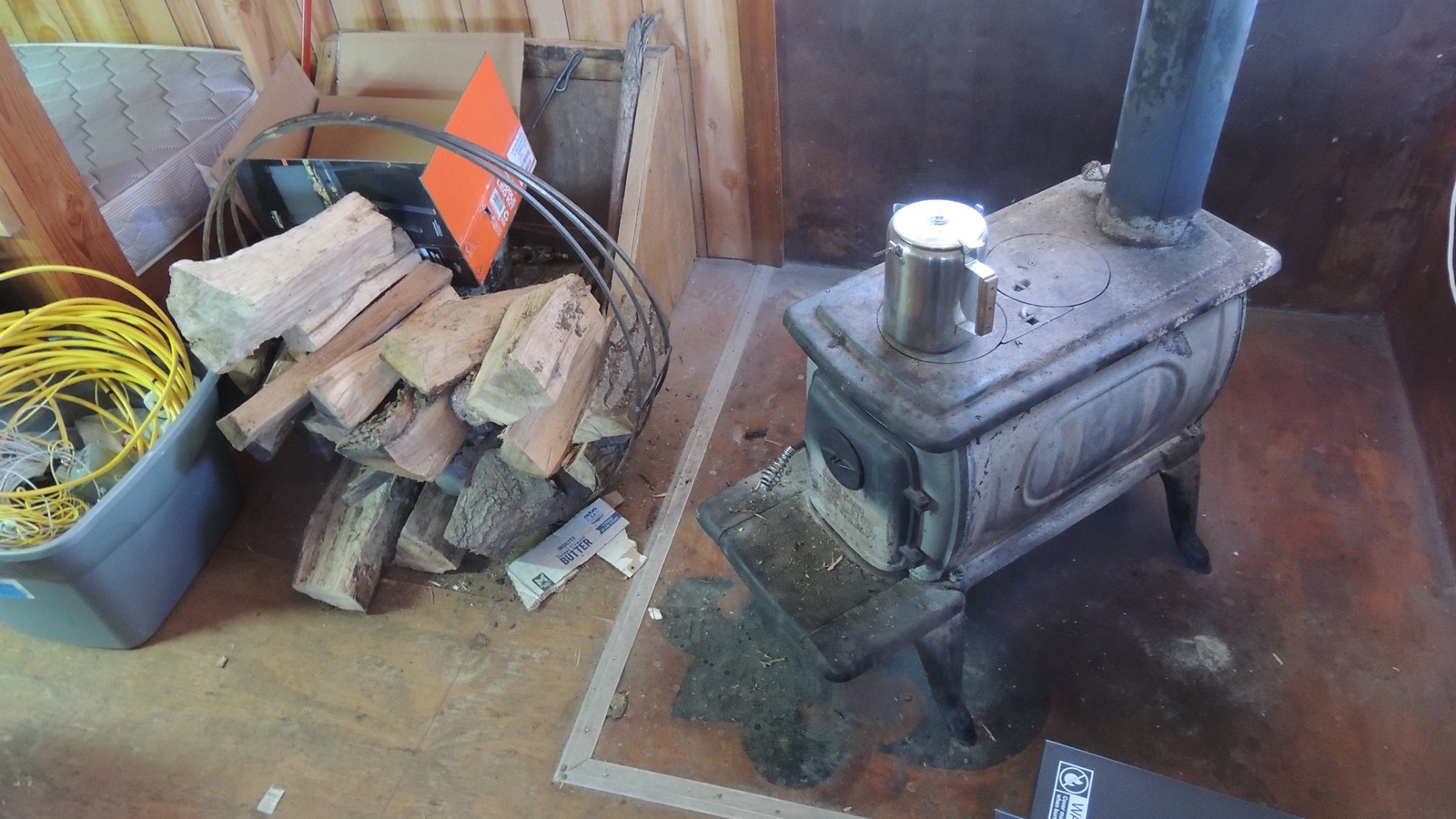 Colin unlocked the cabinet and had the wood box out front well-stocked with firewood for the wood-burning stove.