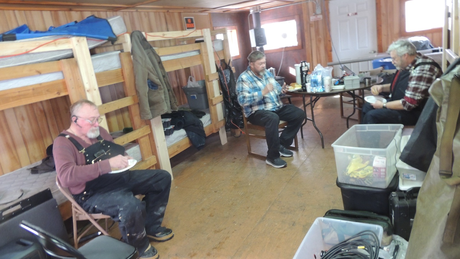 Taryn (N0TKC) and Mark (N8TWO) fixed the crew pancakes, sausage, and eggs on his new indoor grill setup.