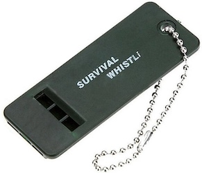 I keep a small whistle in my fanny pack, one with the ground crew, and a third on the first-aid bag. Great for