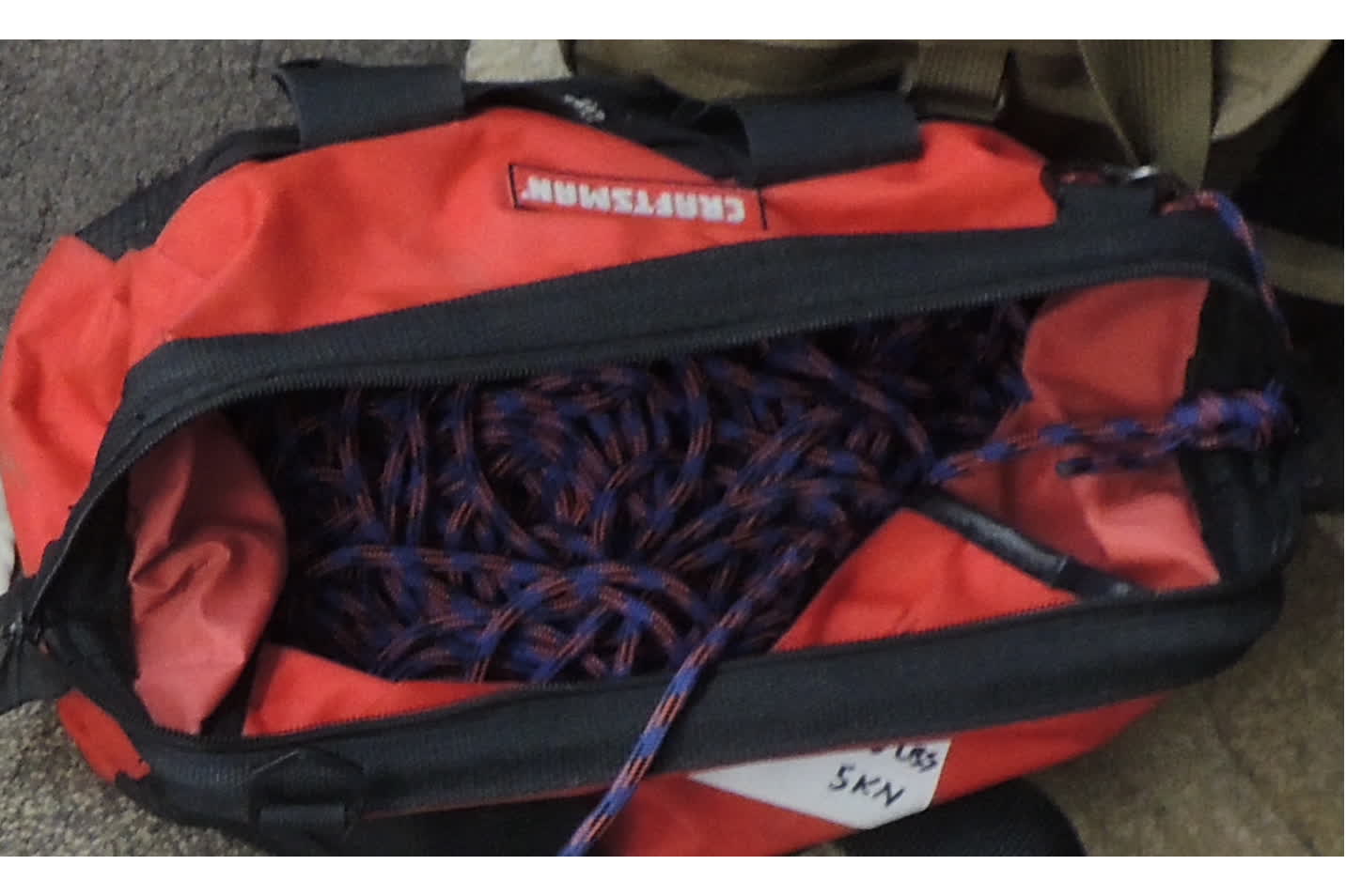It also starts with a bag of spare hardware and ropes for use during the job, which are usually kept up on