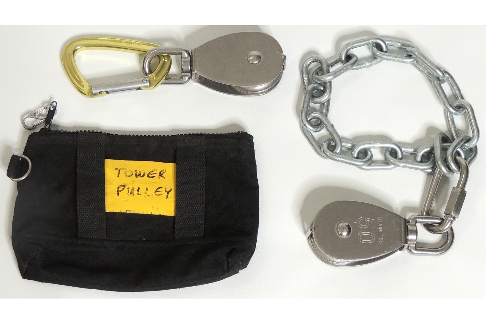 This bag holds the big lift pulley (for the top of the tower) and the big chained pulley (for the base of the