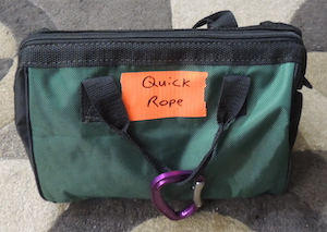 The "quick rope" bag contains an assortment of medium length accessory cords, a fall-arrest strap, and just