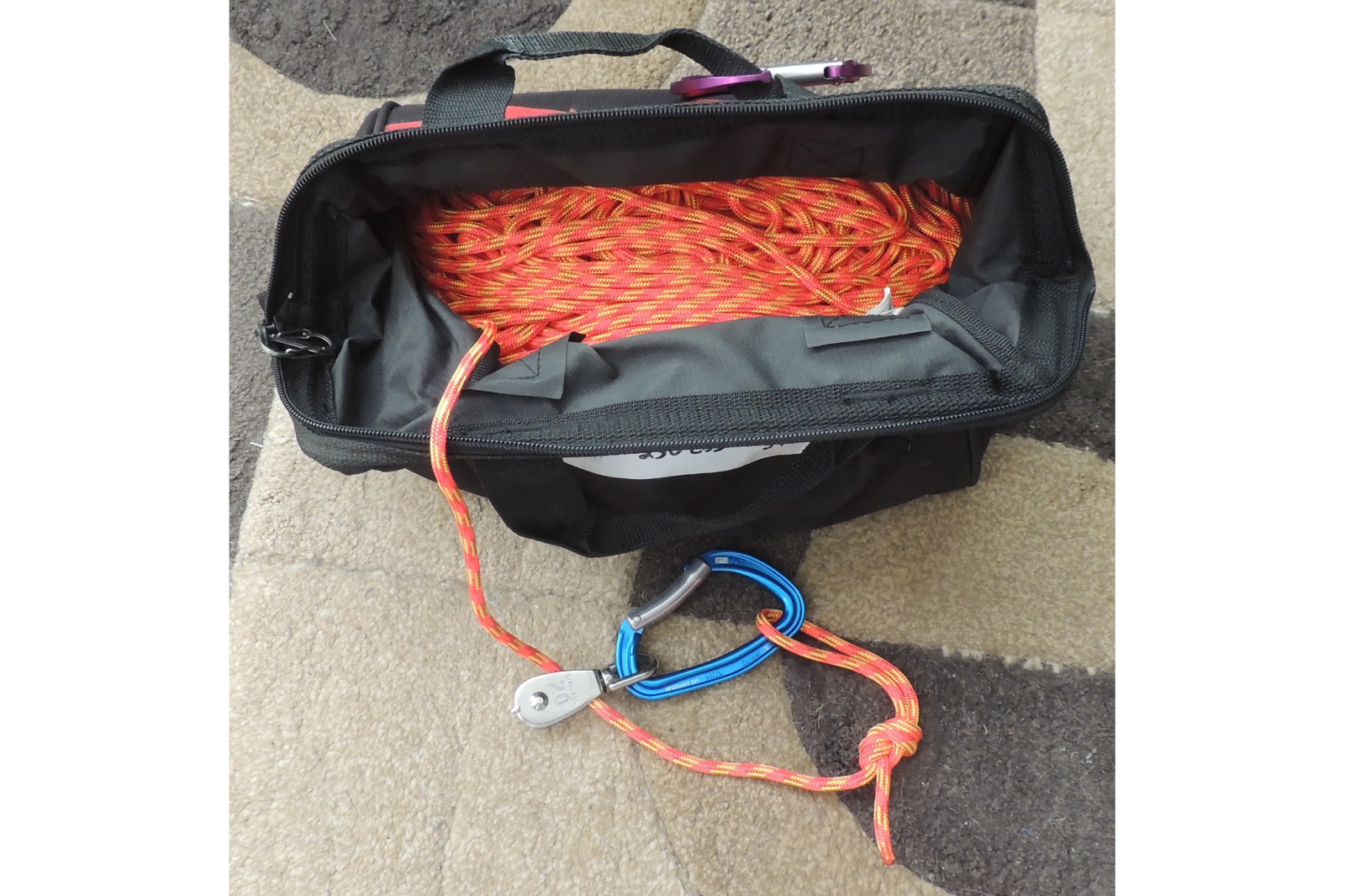 I keep a small bag of 300f of 5mm accessory cord inside for tagging on long lifts. This lighter line is fine