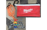 I tried using a microphone pouch to hold my climbing wrenches, but it didn't have a tethering point and also