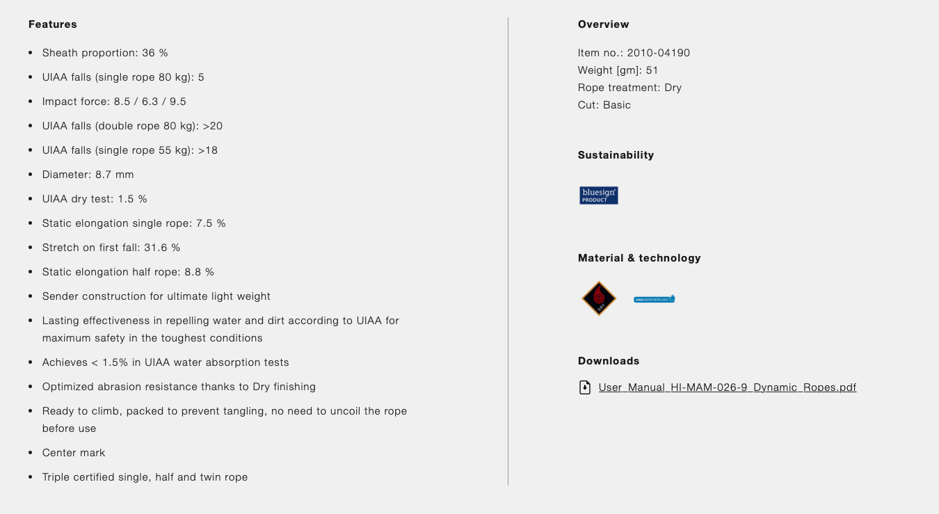 Mammut Tusk 9.8mm 230ft belay rope Mammut Tusk 9.8mm 230ft belay rope: