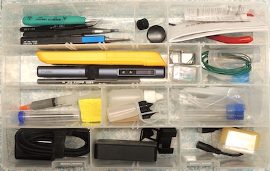 - small needle bottles of Kester lightweight rosin and 99% alcohol, plus a larger bottle of distilled water