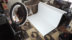 pictures with good lighting. I'm using a few old projector screens as backdrops, which works well, but I still