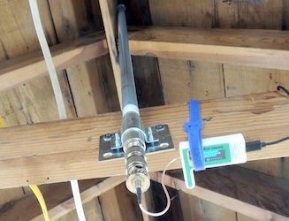 under the rafters. It's configured as a Client-Base, with MQTT linked to IowaMesh. Although it's not in quite