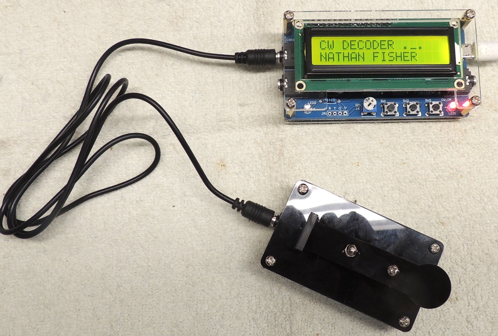 It uses a standard 3.5mm jack for the CW key, and you can connect your own straight-key to the decoder box