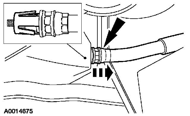9. If removing the LH rear parking brake cable, disconnect the front parking brake cable from the equalizer bracket by compressing the cable conduit locking tabs.