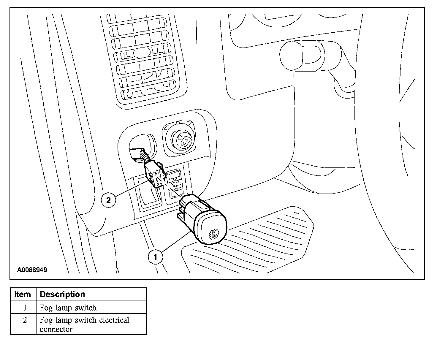 1. NOTE: The fog lamp switch is removed by pushing from behind.