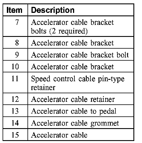 - Detach the speed control cable pin-type retainer from the accelerator cable bracket.
