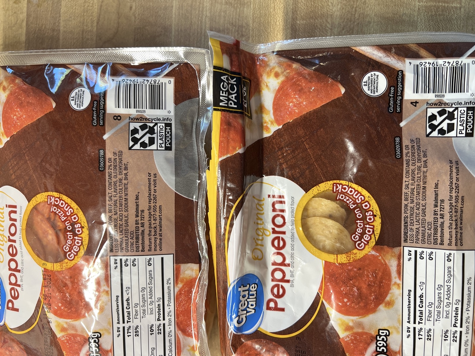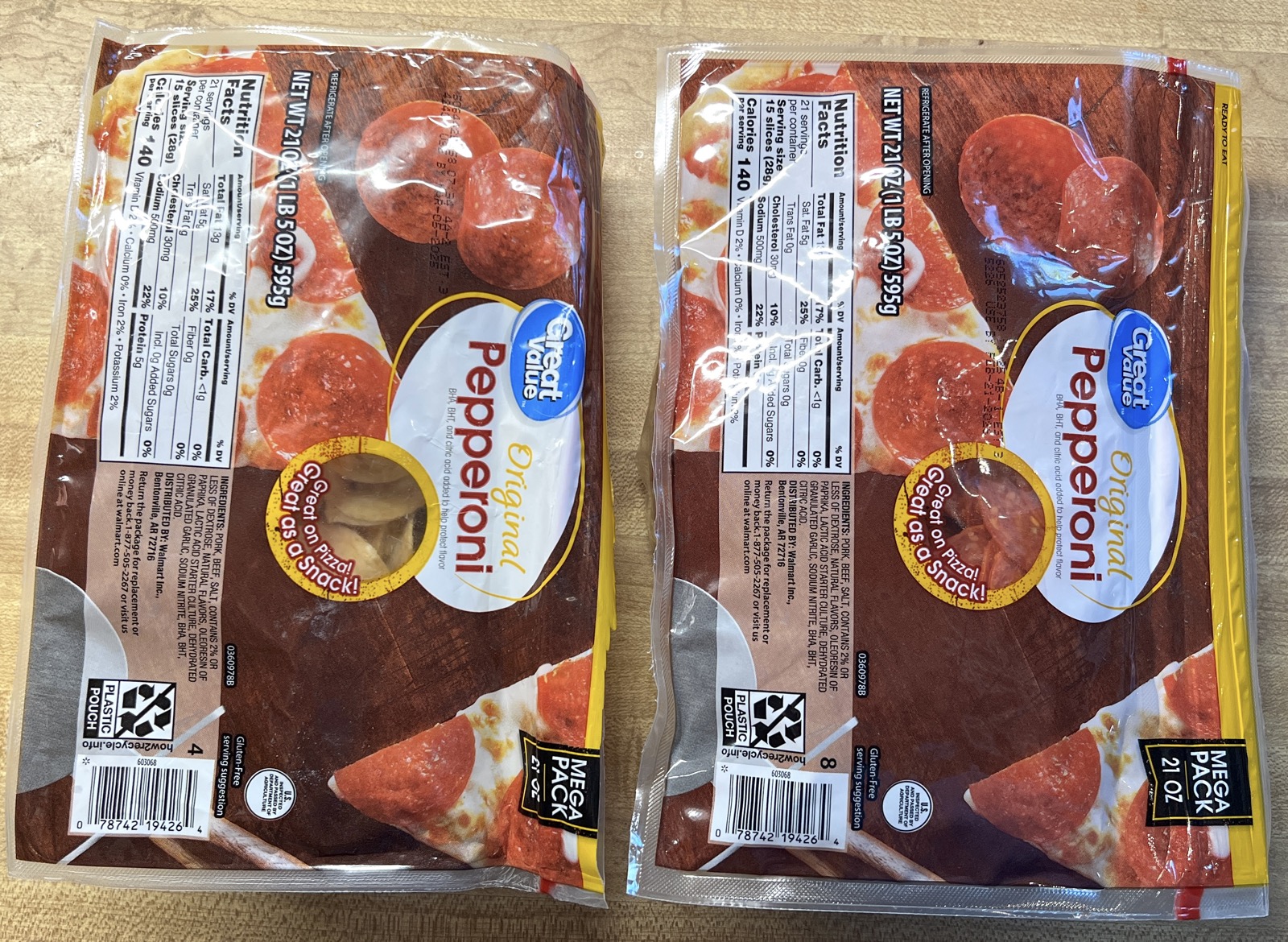 I replaced the (unopened) bag of pepperoni with a new one, and the difference is pretty stark.